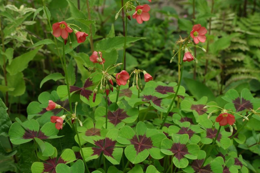 与这些风头正劲的园艺植物相比,红花酢浆草显得老态而又落寞,作为最早引入中国的观赏酢浆草,逐渐被更有观赏性的新贵取代,绿化带成了这种老牌观赏植物的归宿。随遇而安的习性使得红花酢浆草在多数地方都能生长良好,它不畏酷暑烈日,也无惧干旱瘠薄,喜光但也能耐阴,随便扔到哪都能长叶开花,除了不耐霜冻之外没有弱点,寻常温室花朵是不能与它比拟的。