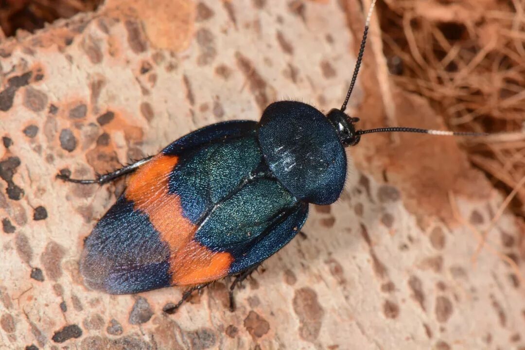 真鳖蠊属(Eucorydia)就是一类中国南方本土的蟑螂,在环境合适的野外才能找到;和家里的小强不同,它们在白天活动,还喜欢访花。图片:深山虫吟