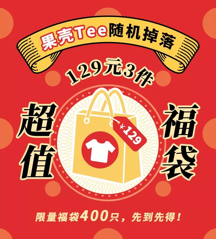 反季福利大放送~大家期待已久的果壳Tee福袋,又来咯!每个福袋里有款式随机的3件果壳原创纯棉T恤,原价99元/件,均为果壳商店正常销售商品。