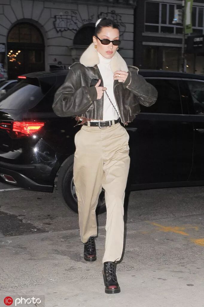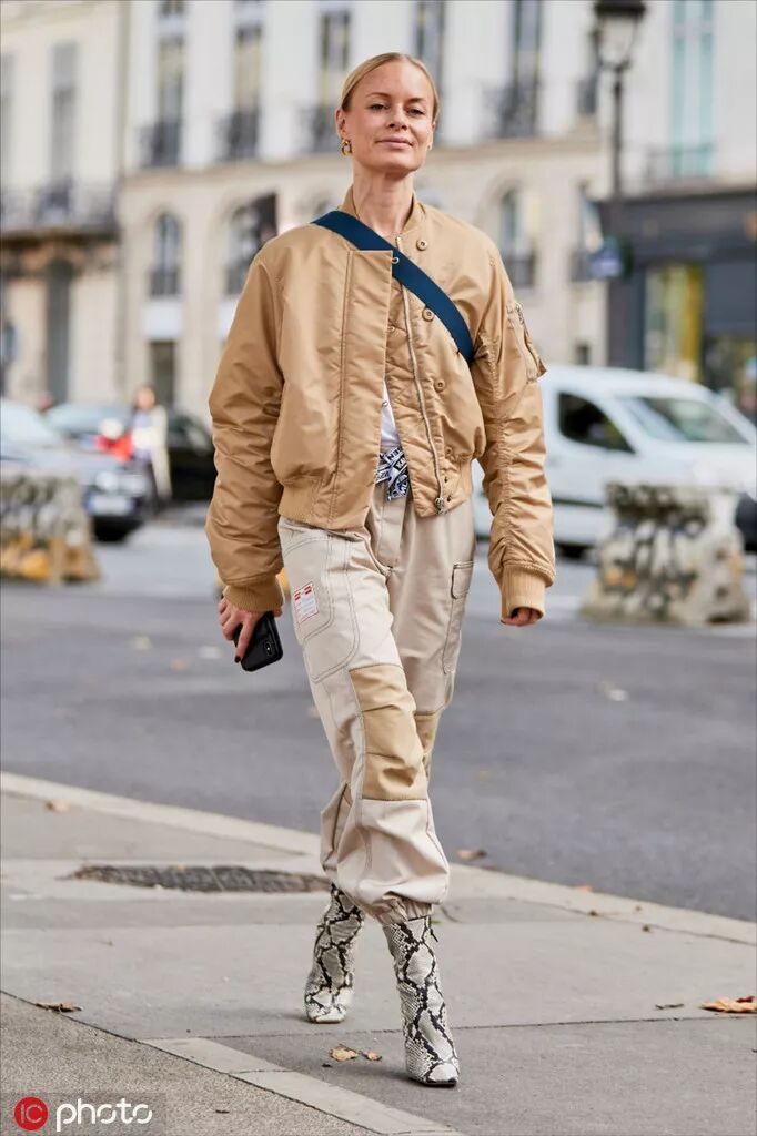 秋冬必备的短外套也是随意搭配工装裤,这其中飞行员夹克是不二选择,同样都是中性帅气风,只是切忌飞行员夹克不要太过于廓形和臃肿,除非你穿的是紧身工装裤。