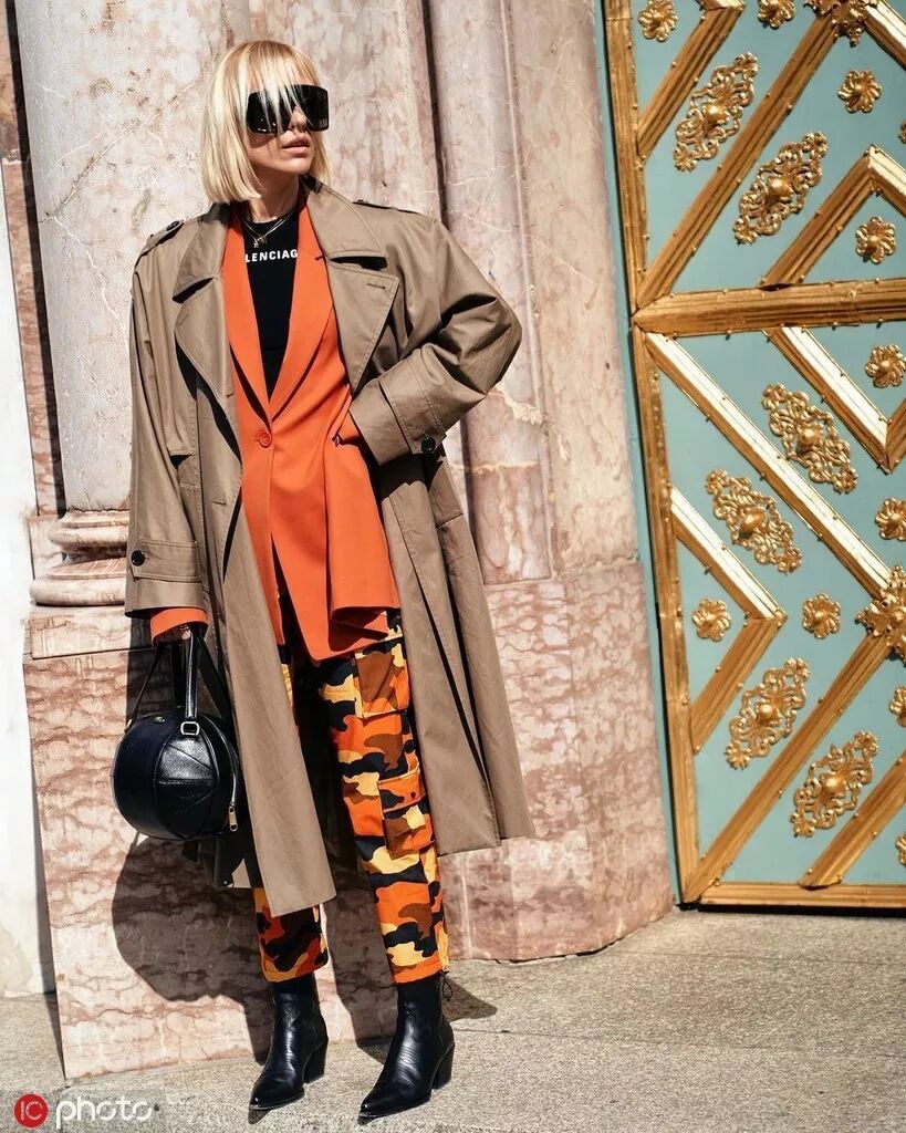 迷彩工装裤是工装裤家族最帅气的存在,乖乖女变酷妹就是这么简单。蹬上短靴、卷起裤脚,军绿色甚至是橘色迷彩,都可以大胆尝试。