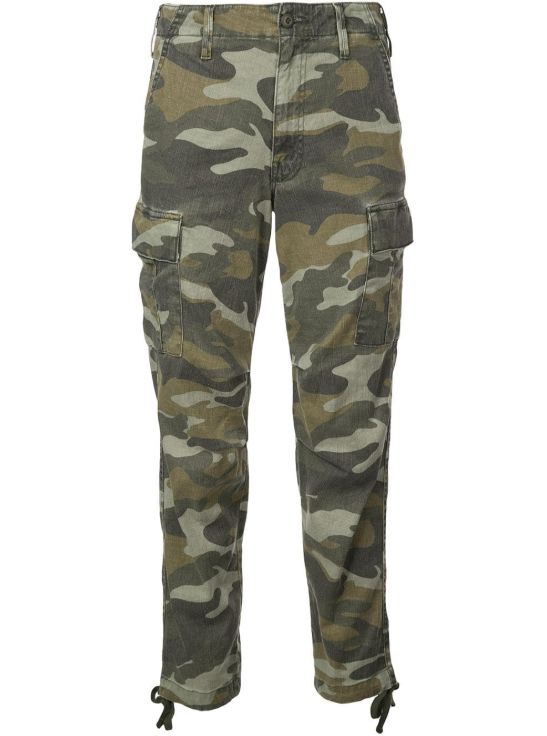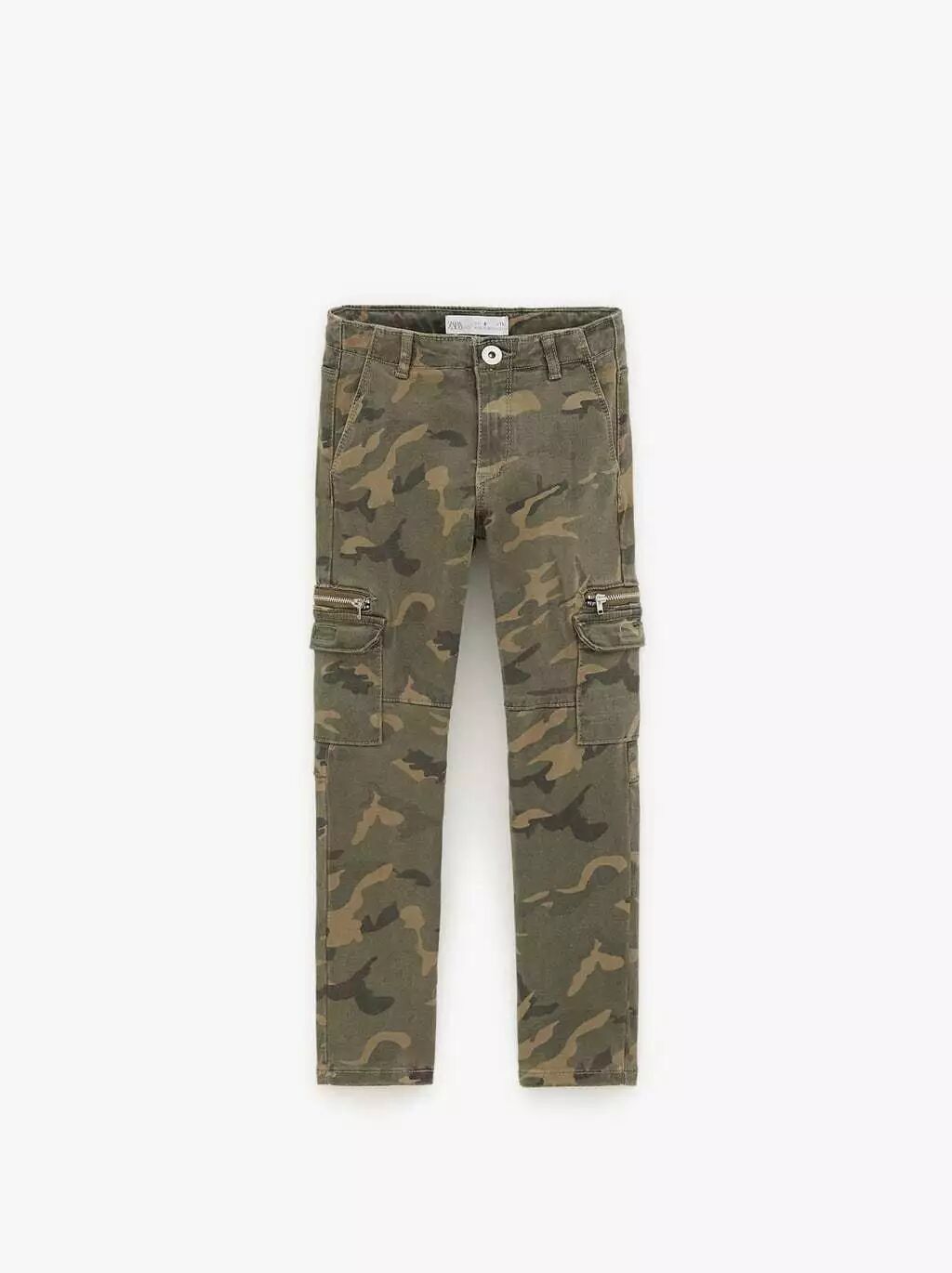 滑动查看图片。Zara装饰性细节工装款牛仔裤¥ 199.00;MOTHER迷彩工装牛仔裤,¥2,726;UNRAVEL PROJECT迷彩印花露踝工装裤,¥6,830