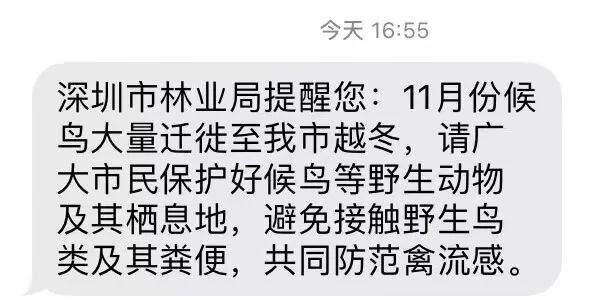 在候鸟越冬季,一些城市会通过短信提醒市民注意事项。图片:三蝶纪