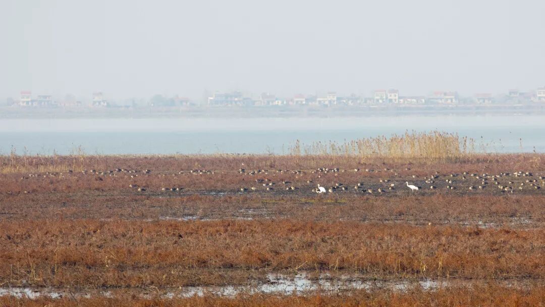 鄱阳湖也有白鹤,而且热闹得多。这里是国内最大的白鹤越冬地。来自俄罗斯萨哈共和国的白鹤都在长江中游湿地越冬,它们特别青睐鄱阳湖;而在更西边一些位置度夏的白鹤,就要飞到中亚-北印度或者里海越冬了。