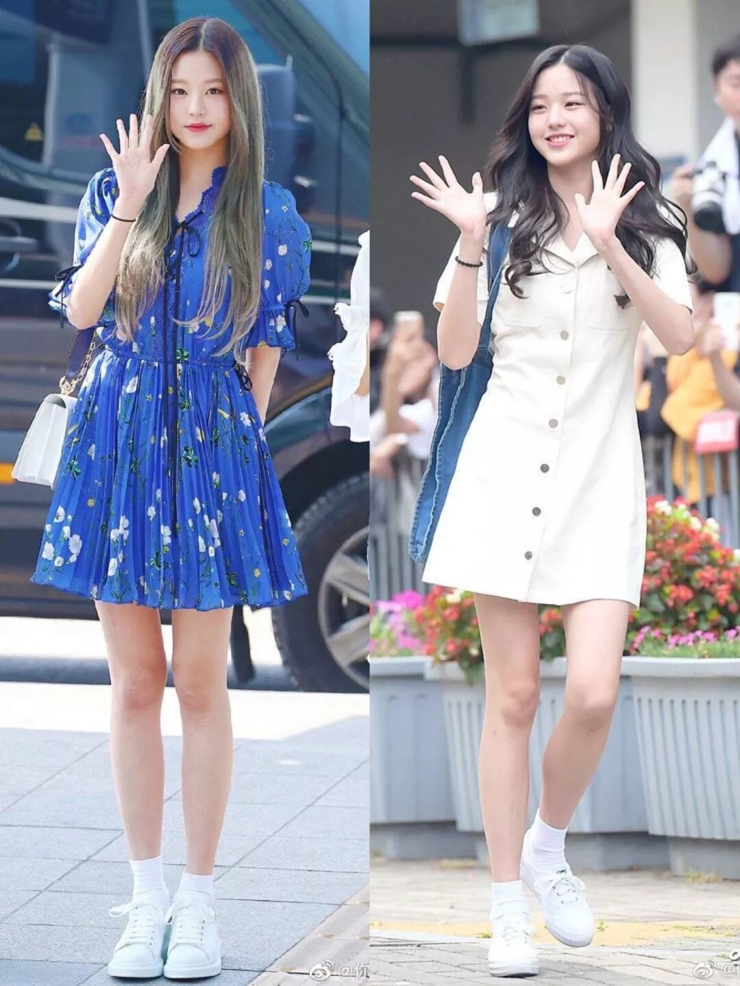 小圆的穿衣风格完全就是校园偶像剧的女主角:球鞋白袜,学生裙装配长发,最爱的小短裙也是长腿利器。(我要是有这样一双腿,可以天天穿短裙。)她的穿搭就是两个字——干净,给人清新甜美的感觉,而且非常非常实穿。