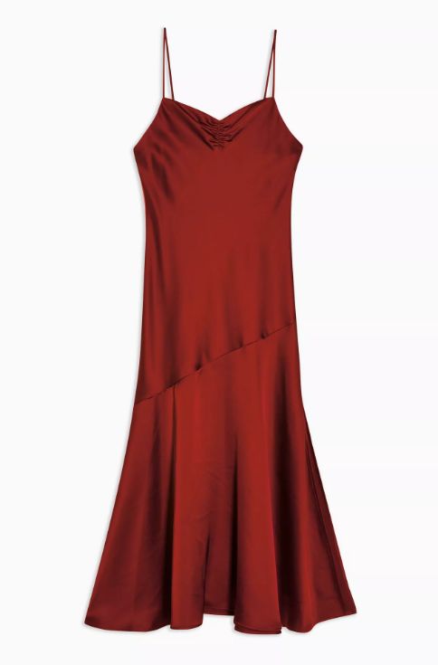 Topshop 红色缎面吊带裙 ¥313