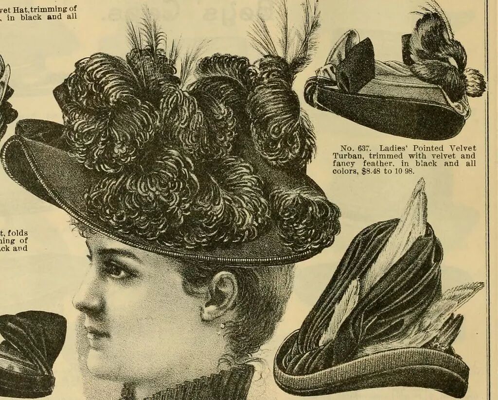 19世纪末期流行的羽毛装饰帽。Internet Archive Book Images / flickr