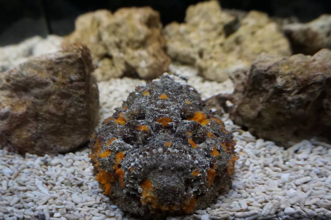 左右滑动看图,分别是玫瑰毒鲉(Synanceia verrucosa)和日本笠鳚(Chirolophis japonicus)。