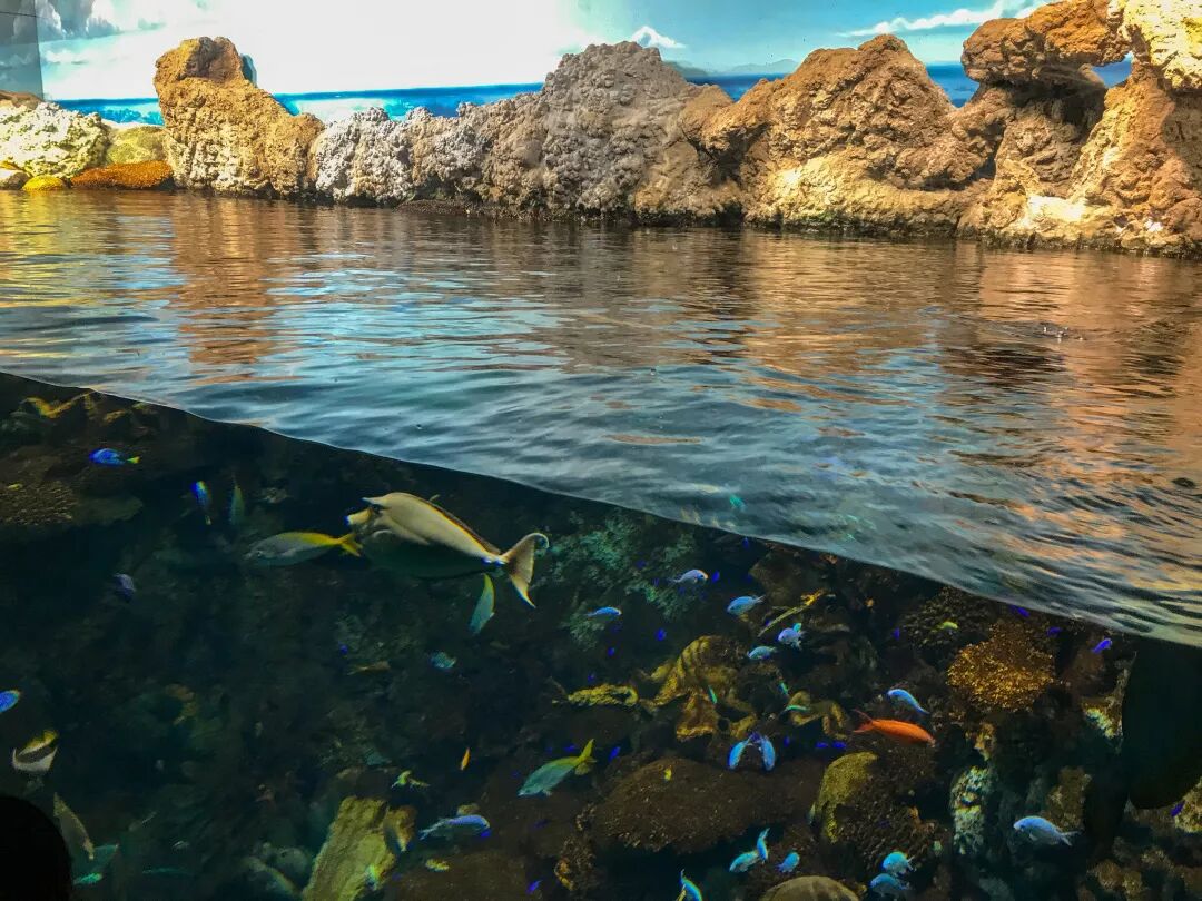 随后的“大堡礁”展缸,水下多彩的世界甚至和水面上形成了对比,水面好像隔开了两个世界。