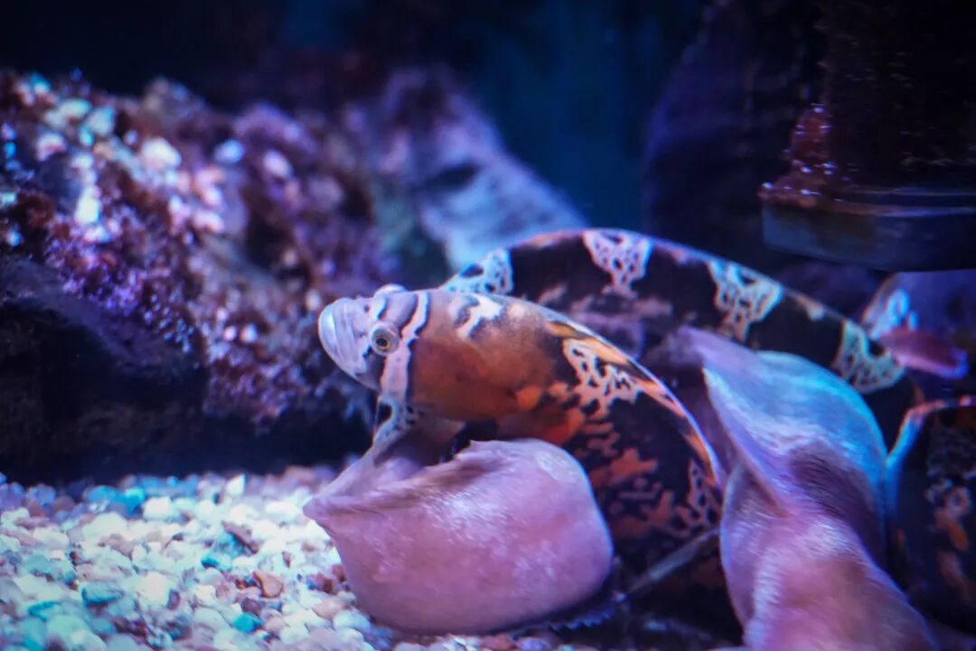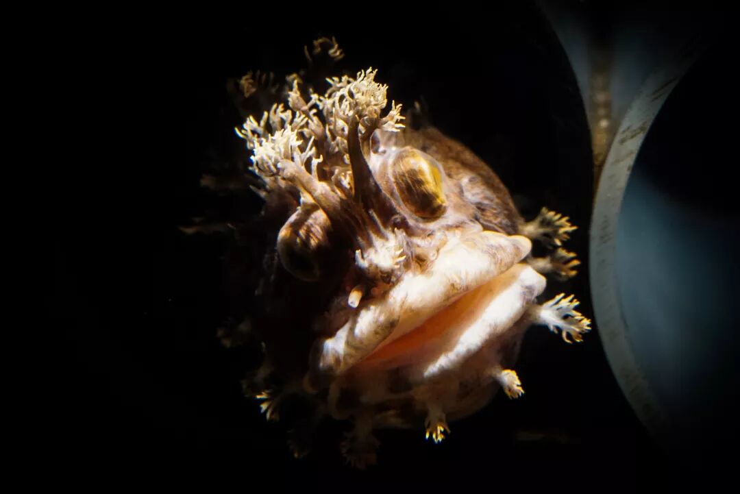 还有第一次在日本展示、暂无中文译名的一种锦鳚(Pholis fasciata)。它没有腹鳍,特点是背后的带状花纹,橘色、黄色或者绿色都有。目前人们对它们的了解还比较少。