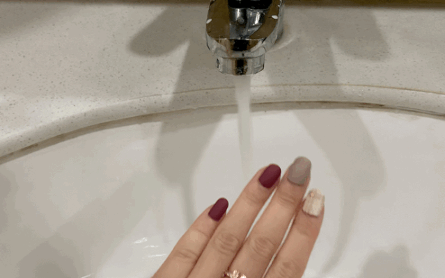 粘上后,按一按指甲的四周,让甲片更贴、更紧实。