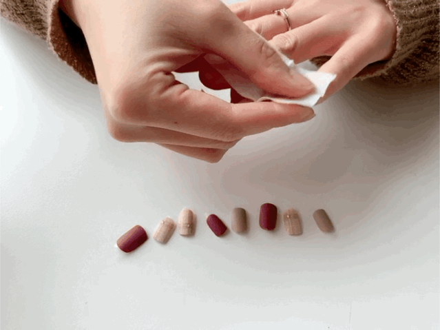 用一次性酒精棉清洁甲面,以达到更好的贴合度。