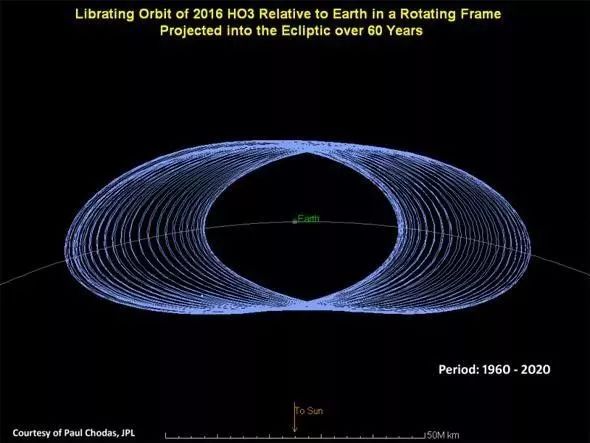1960-2020年间,2016 HO3相对于地球的位置变化 | JPL