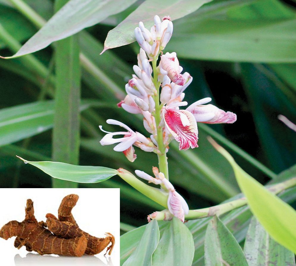 高良姜的地下茎形状像生姜,但是外皮略微发红,质地也比生姜硬,切开来颜色金黄,有一种独特而浓郁的香味。泰国的传统菜冬阴功中,最核心的三种香料就是高良姜、箭叶橙和香茅,冬阴功的那种“肥皂味儿”,也是高良姜带来的。