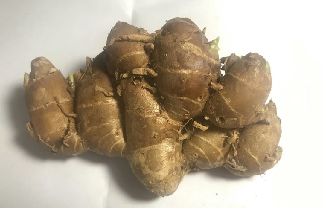 菊芋。图片:PaulFenwick / Wikimedia菊芋的地下块茎,外形很像姜。菊芋块茎中含有大量的菊芋多糖,这是一类水溶性的膳食纤维,所以理论上说,菊芋是一种不错的健康食品,就是吃多了容易放屁。