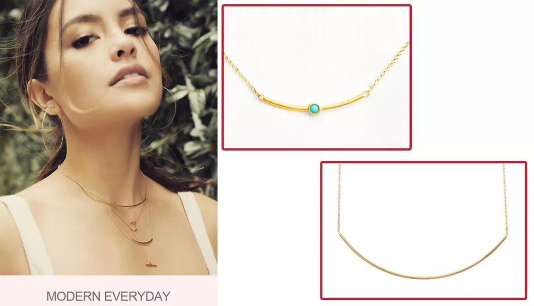 ▲绿松石平衡幸运锁骨链 RMB 389(右上)