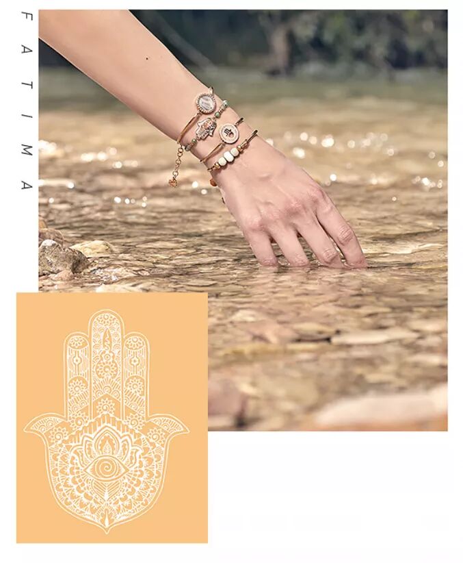 而原产于土耳其北部的法蒂玛之手形象,则象征着好运、富足,命名自伊斯兰先知穆罕默德的女儿法蒂玛,是当地人认为躲避邪恶之眼的重要配饰之一。也是配饰品牌非常青睐的灵感来源。