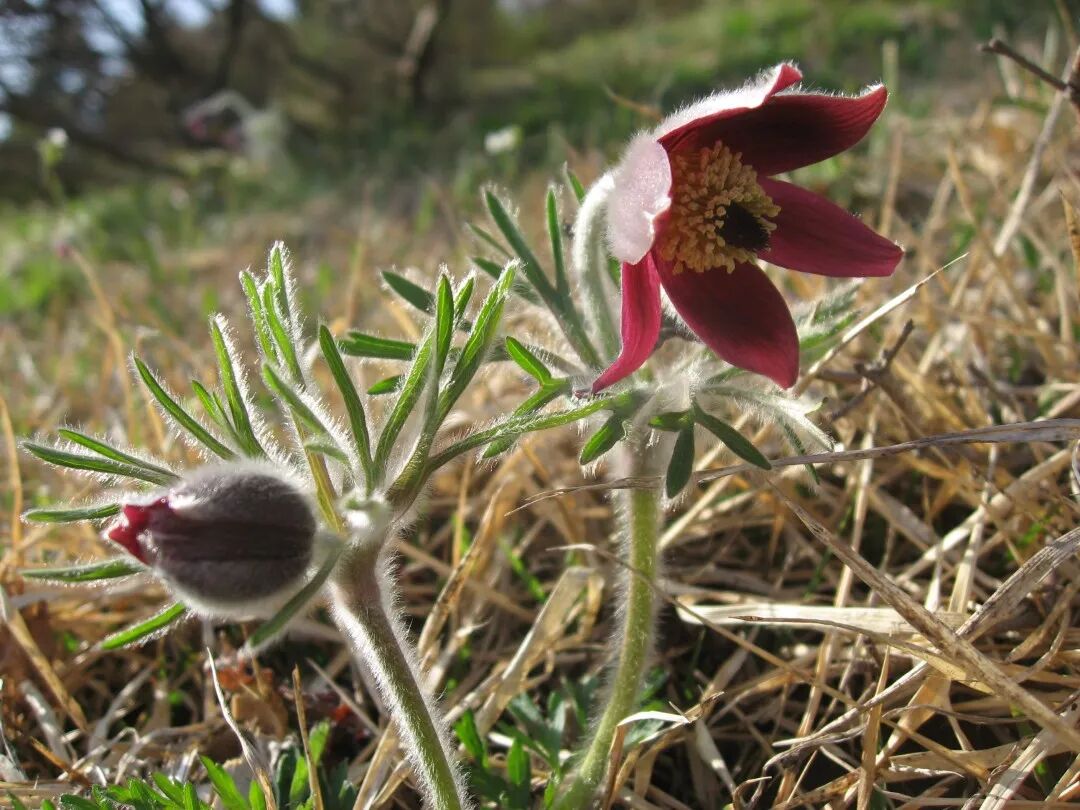 说完了欧洲的白头翁,再说说我们中国自己的。白头翁属植物在我国也很常见,其中白头翁Pulsatilla chinensis更是以中国来命的名。在东北地区,分布有另外一种白头翁——朝鲜白头翁Pulsatilla cernua,把它单拎出来说,是因为它独特的花色。和之前提到过的那些种类都不同,朝鲜白头翁的花是深红色的,在早春花卉中非常少见。