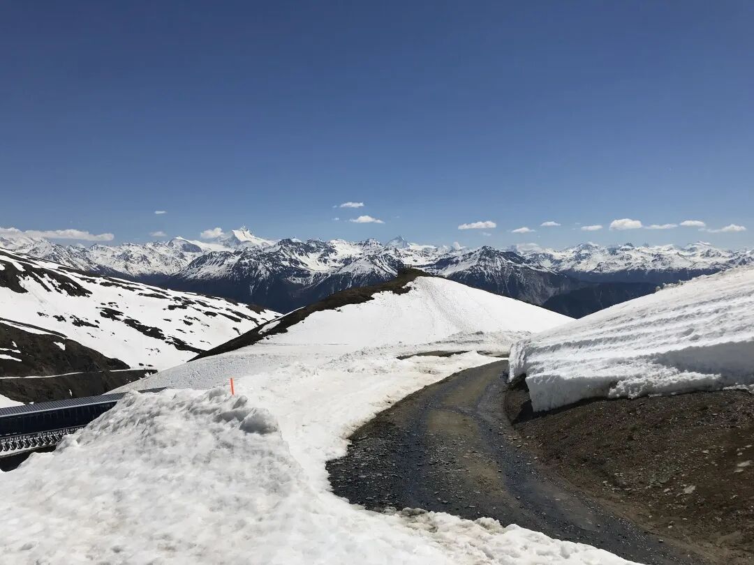 白头翁之旅的起点,是温泉小镇洛伊克巴德。虽然已经是六月初,但我们在雪山上的缆车站放眼望去,周围依然一片白雪皑皑,只露出几小片枯草地,看着并不像有活植物生长的样子。但是当我们抱着碰运气的心理,跑到草地上定睛一看,却发现有不少野花早已绽放,只不过过于矮小,在远处根本看不见。