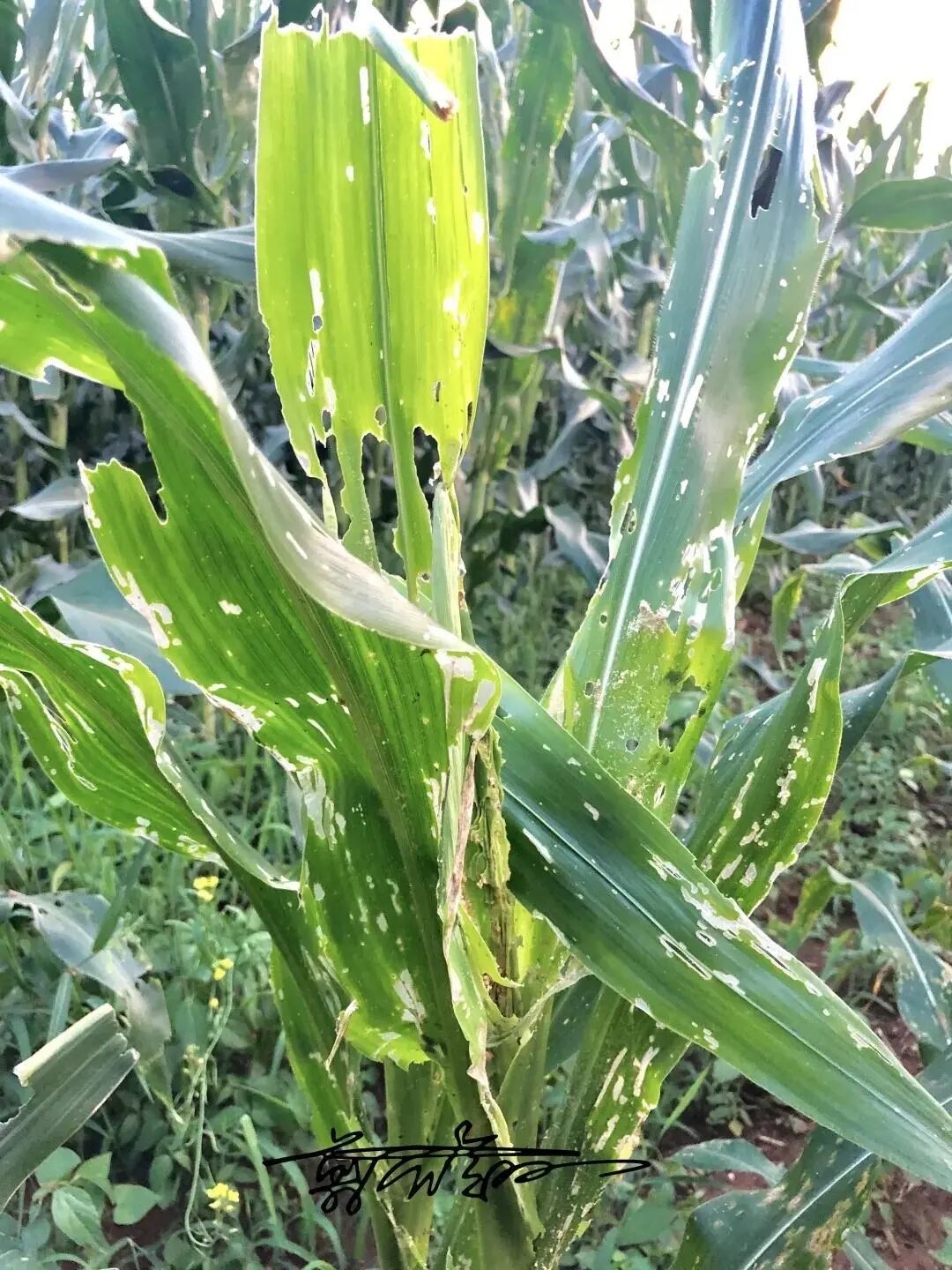 被农民放弃的玉米田早已被草地贪夜蛾啃噬殆尽。图片:翦翳翎