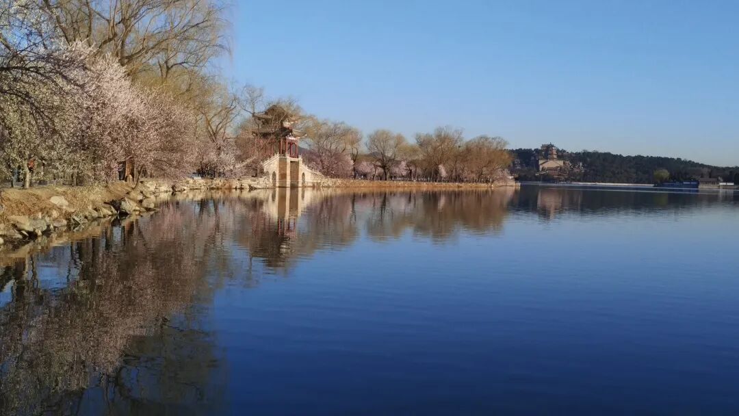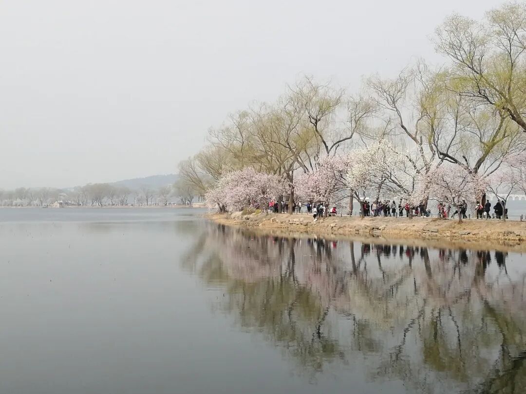在北京上学,去年春天忙里偷闲去颐和园,那边的一道堤开满了樱花,远远看上去就像一道粉色的飘带,当时去的时候有点迟,风一吹花瓣纷纷飘落,像花瓣雨一样,特别美。