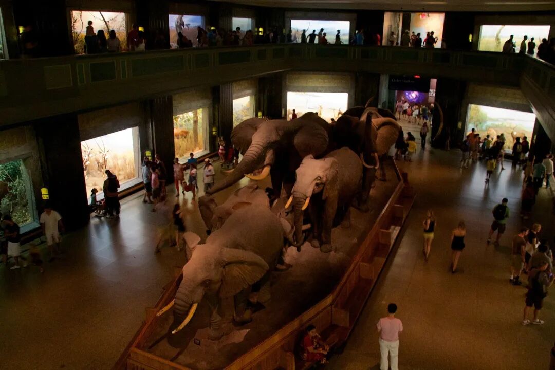 位于纽约的美国自然历史博物馆内展出的非洲象群标本。图片:Mike Peel / Wikimedia