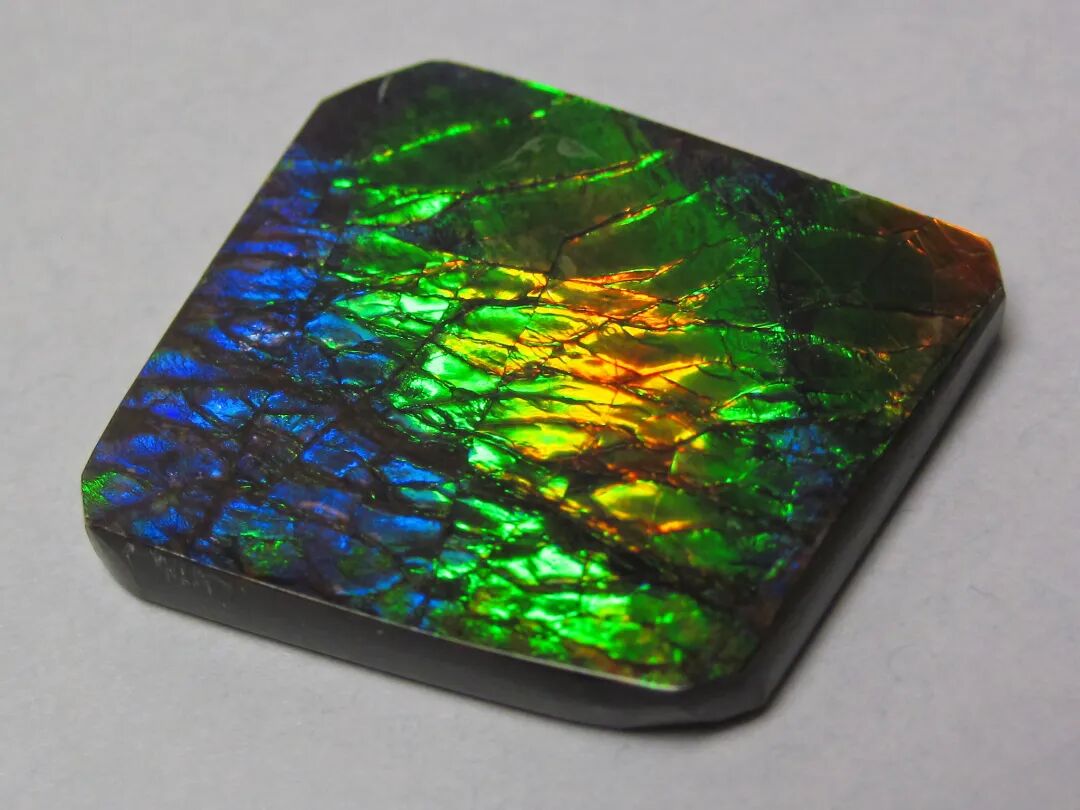 其实除了北美有分布之外,糕菊石属的成员在东非、南欧、中亚等地都有分布。有些其它产地的糕菊石上部分也有斑彩石类似的变彩,譬如说马达加斯加的糕菊石,但是其上具有变彩的部分面积小而不完整,很难用作宝石用途。