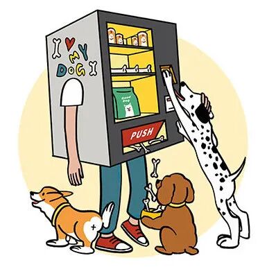 我们猜测,也许在狗狗眼里,人类是长着四肢的狗粮贩售机,卖萌与撒娇都是这台贩售机支持的支付方式。只要一个可怜又可爱的眼神,小饼干就会哗啦啦地掉到碗里来。