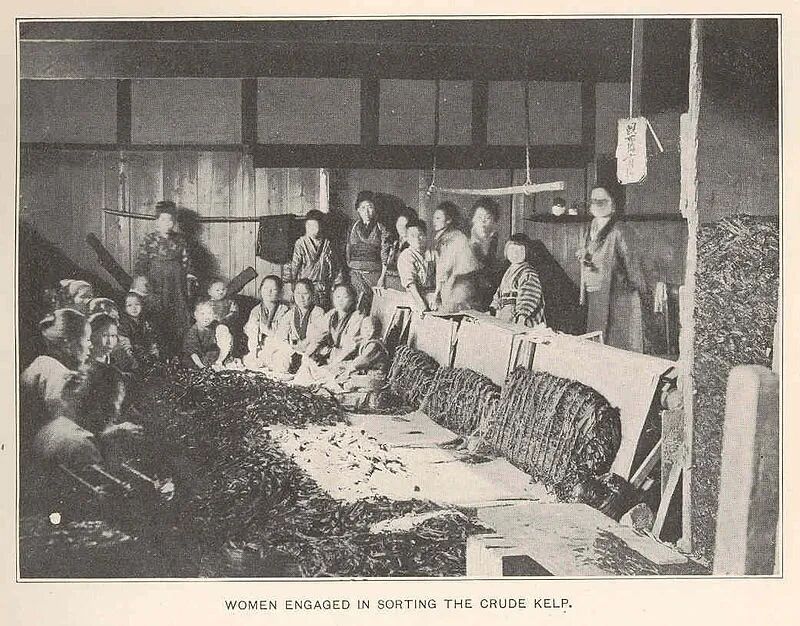 大阪的海带加工厂,女工在给海带分类。图片:Wikimedia Commons
