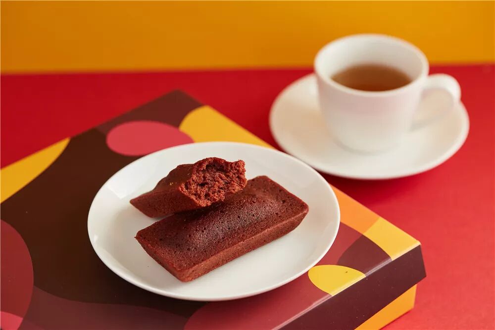费南雪,源自法语Financier,是一种经典的法式杏仁长蛋糕。一块费南雪,再搭配一杯红茶,不管身处何时何地(就算是坐在工位上搬砖),也能感受到下午茶的放松和惬意。费南雪和其他蛋糕很不同的是,在制作过程中不仅仅是将黄油融化,而且还会煮成焦黄色。焦化后的黄油,会散发出浓郁的焦香。原料中还会加入大量巴旦木粉,带来坚果种子的油脂香。用的是香草荚中的香草籽,而非香草精,香气更加有质感。将派悦坊家很拿手的红丝绒和法式费南雪两种风格融合,混搭出来的效果很棒,有着浓郁焦香。这次还升级了配方,融入纯正黑巧克力,将整体甜度拿捏得恰到好处。