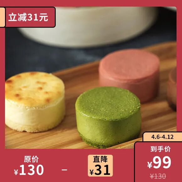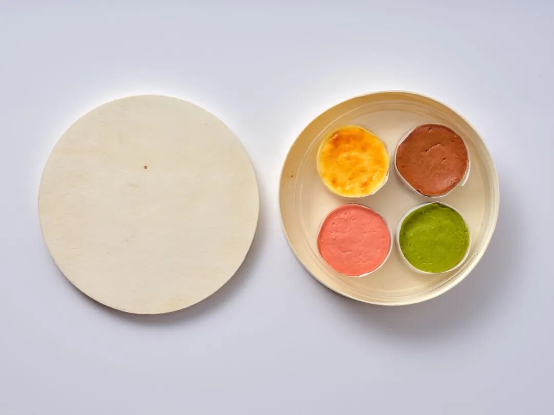 每盒里面有4枚不同味道的半熟芝士:原味、巧克力、抹茶、草莓,是不仅不会出错而且很出彩的组合。