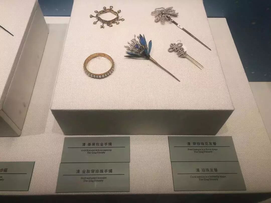 沈阳故宫博物院“金玉满堂”展。图中这套展品中,点翠饰品就没有展牌。图片:吴二棒