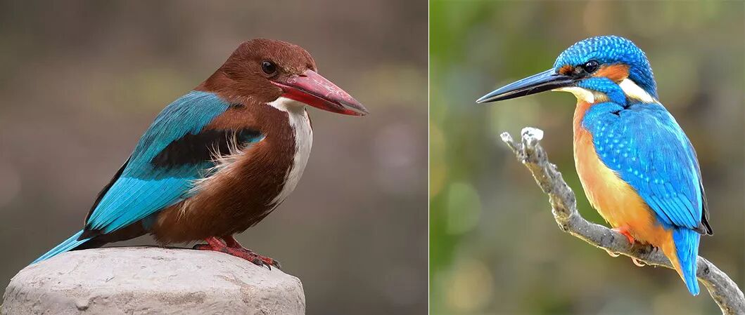 左:白胸翡翠;右:普通翠鸟。图片:Satdeep Gill & Shantanu Kuveskar / wikimedia