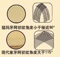 猛犸象牙(左)与非洲象牙(右)勒兹纹的对比。图片:吴二棒