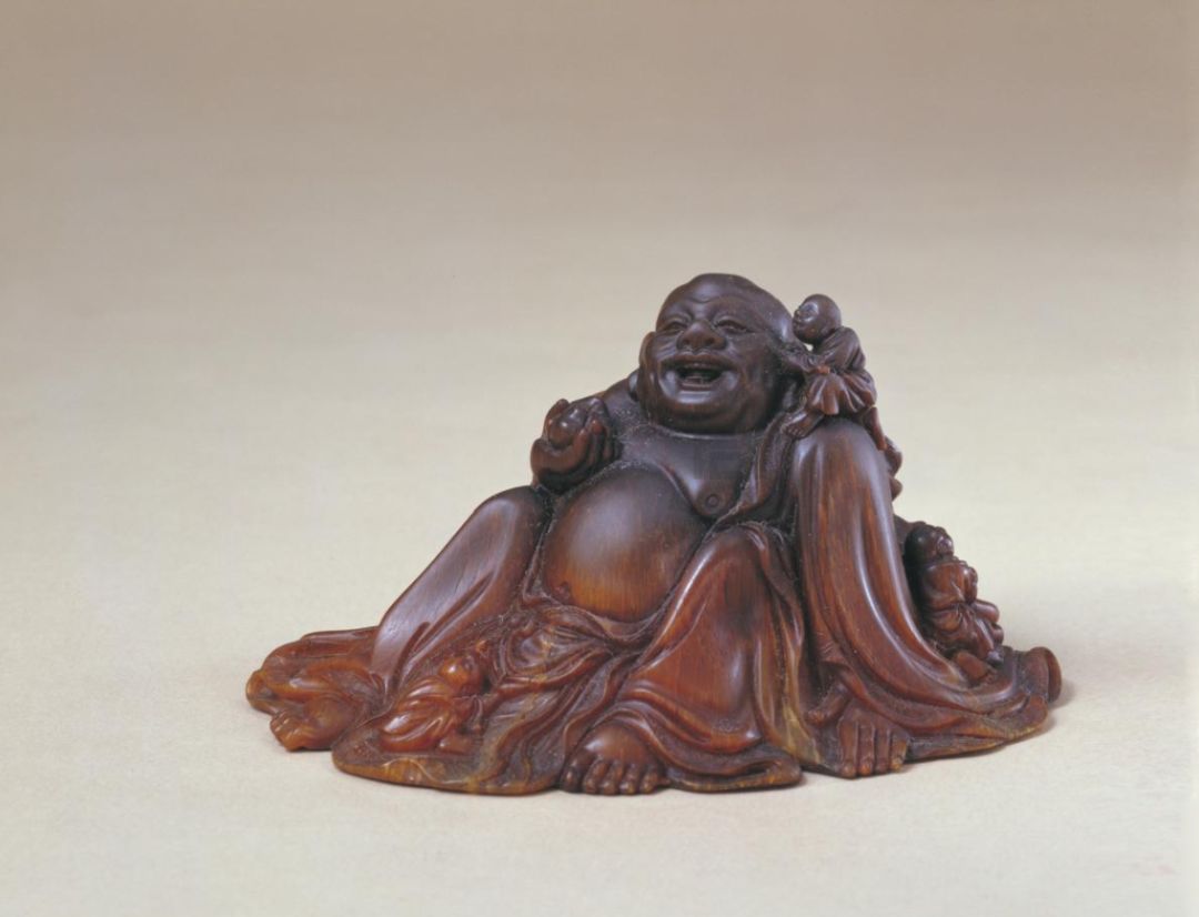 “回归之路”展出的犀角雕布袋僧。图片:故宫博物院