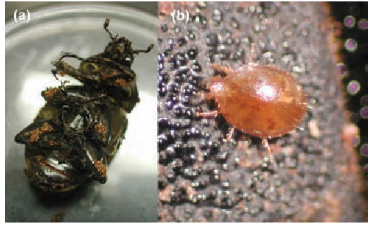 被螨虫寄生的雌性锹甲。图片:Kouichi et. al. (2007)