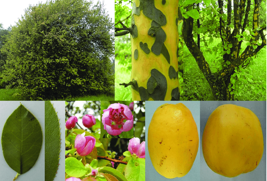 木瓜,黄色的果实和斑驳的树皮。图片:Olga Grygorieva et al. (2019) Садоводство и виноградарство 1 223, 170, 1