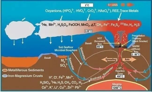 黑烟囱形成机制示意图。图片:Wikipedia