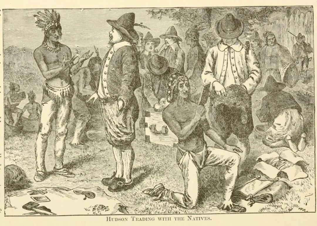 西方殖民者在美洲和当地原住民进行交易。图片:Patrick Gray / Wikimedia