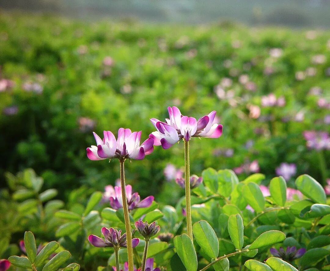 虽然少有观赏品种,但开花时的紫云英可连绵成片,一片氤氲淡紫,令人赏心悦目的。