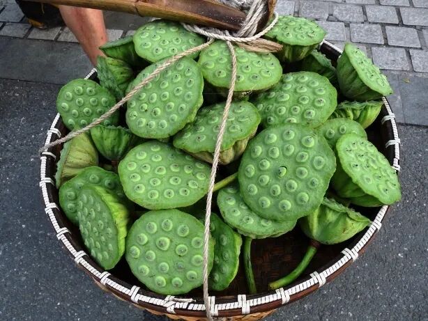 到了夏末初秋,莲子就上市了。因为我们这儿就是产地,莲子都是吃新鲜的,直接从莲蓬里剥出来就能吃了。