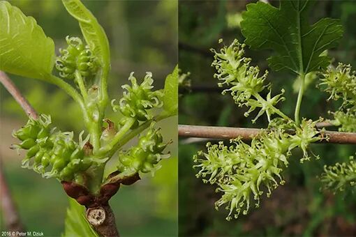 桑树的雌花序(左)和雄花序(右)。图片:minnesotawildflowers