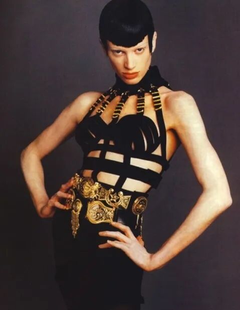 至于各种荧光绑带卡【哔——】装和低腰阔腿牛仔裤,很明显是还原了千禧年首次复古风盛行时两大炙手可热的icon级别品牌:Versace和Alexander McQueen的设计。