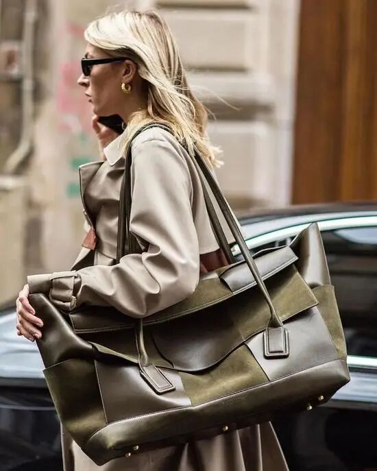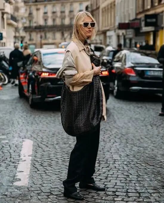 另外,相比前几年的紧身窄脚裤和只能装可爱的小包,各位花蝴蝶们应该都发现阔腿低腰裤和大包已经开始回潮了。这两个单品也是80年代风格的标志性元素之一哦~