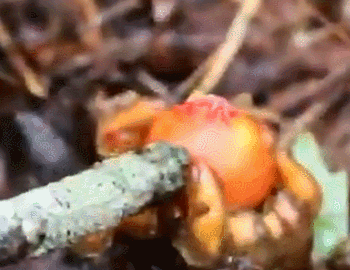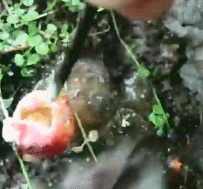 戳一下才会喷出孢子的美口菌。图片:The Great Wander / youtube