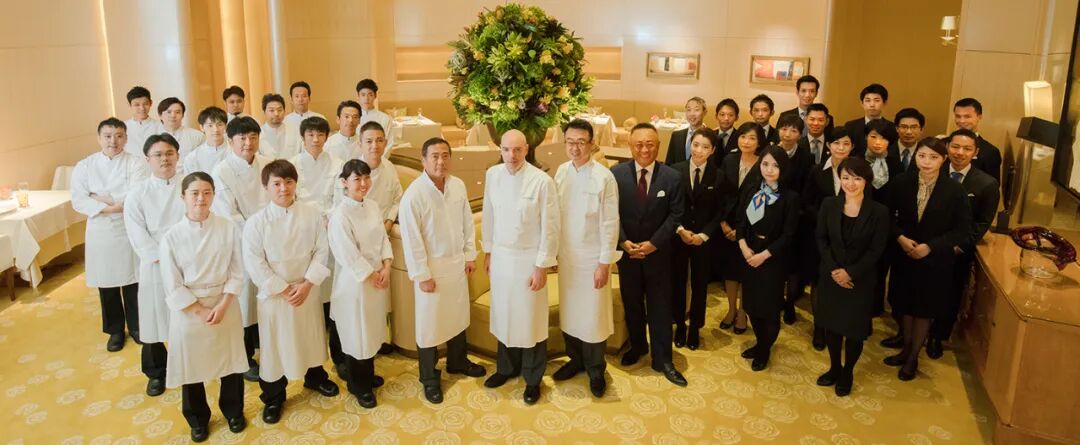 店内的山茶花形状甜品 | beige-tokyo.com基于日本人对法餐的爱,资生堂也在东京开设了L’OSIER 餐厅,还拿到了米其林三星。店里的服务团队 | losier.shiseido.co.jp相比于CHANEL,L’OSIER 的历史更长,1973年便创立开业。餐厅发展一直非常稳定,不过现在也因疫情影响处于休息状态。