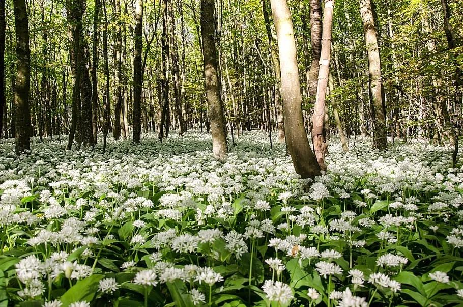 每到初夏时节,林地树荫下就变成了熊葱花的海洋。图片:PxFuel