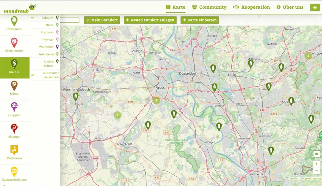 最喜欢熊葱的要数德国人,在德国著名的采摘网站mundraub中,标注了各个国家和地区允许采摘熊葱的地点。图片:mundraub