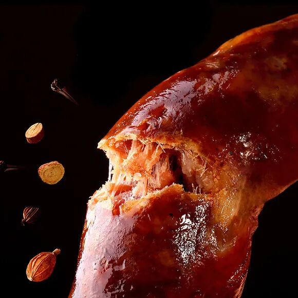 没人可以面对“来根烤肠吗?”的提问而嘴不改色。如果说充满淀粉的烤肠是小学门口的集体回忆,那么来根肉汁四溢的真烤肠就是我们成年人的憧憬。切下鲜活大猪的前肘肉,搭配广西浦北的综合香料调味,手工灌制,风干晾晒。一口咬下去,划破肠衣,肉汁爆出,嚼到真实的肉粒肉丝,带着回弹和韧性,在牙齿间横冲直撞,这是小学生们无法想象的快乐!