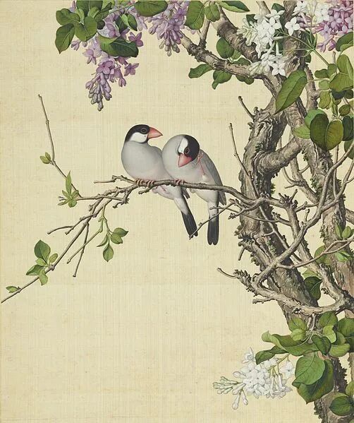 郎世宁《仙萼长春册》中的紫白丁香图。藏于台北故宫。